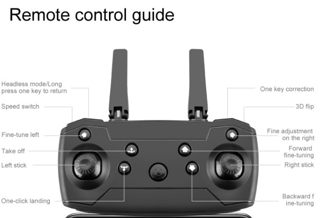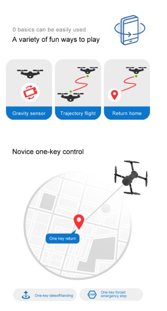 Вверх/вниз, вперед/назад, поворот влево/вправо, боковой полет, трехуровневая скорость полета, светодиодный свет, Безголовый режим, автоматическое возврат одной кнопкой, режим удержания высоты, WiFi FPV