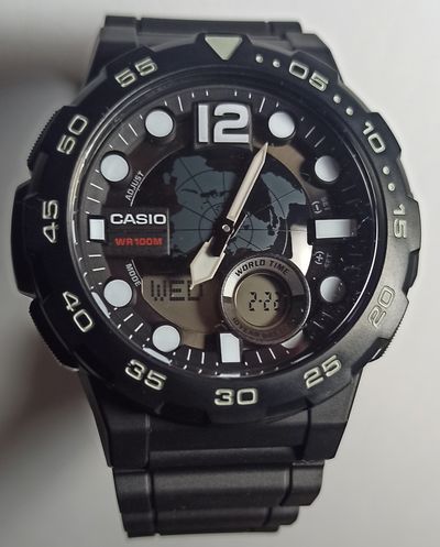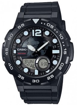 CASIO AEQ-100W-1BVCF суперфункціональна модель за невеликі гроші. Відмінно підходять для купання, оскільки мають 100-метровий водозахист.