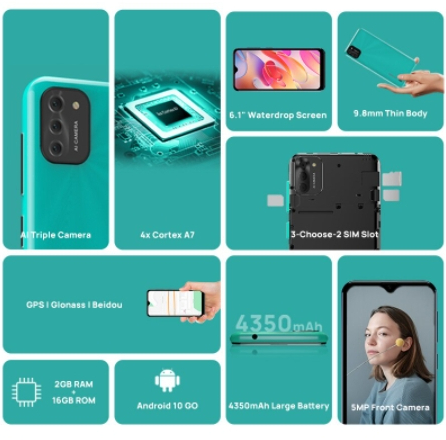 DOOGEE X93, 6,1' HD IPS экран, DUAL SIM, 4 ядерный процессор, оперативная память 2GB, ROM 16Gb, Android 10.0
