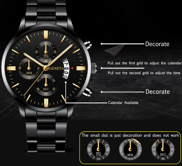 Аналоговый  дисплей, 3 маленьких циферблата и 2  боковые  кнопки носят декоративный  характер  и не имеют функций