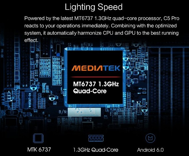 Oukitel C5 Pro , 5' IPS экран, 4 ядерный процессор 1,3 GHz, оперативная память 2GB, ROM 16Gb, Android 6.0, 2 SIM-карты