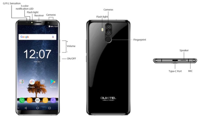 Oukitel K6 , 6' IPS FHD экран, 8 ядерный процессор, оперативная память 6GB, ROM 64Gb, Android 7.1, 2 SIM-карты