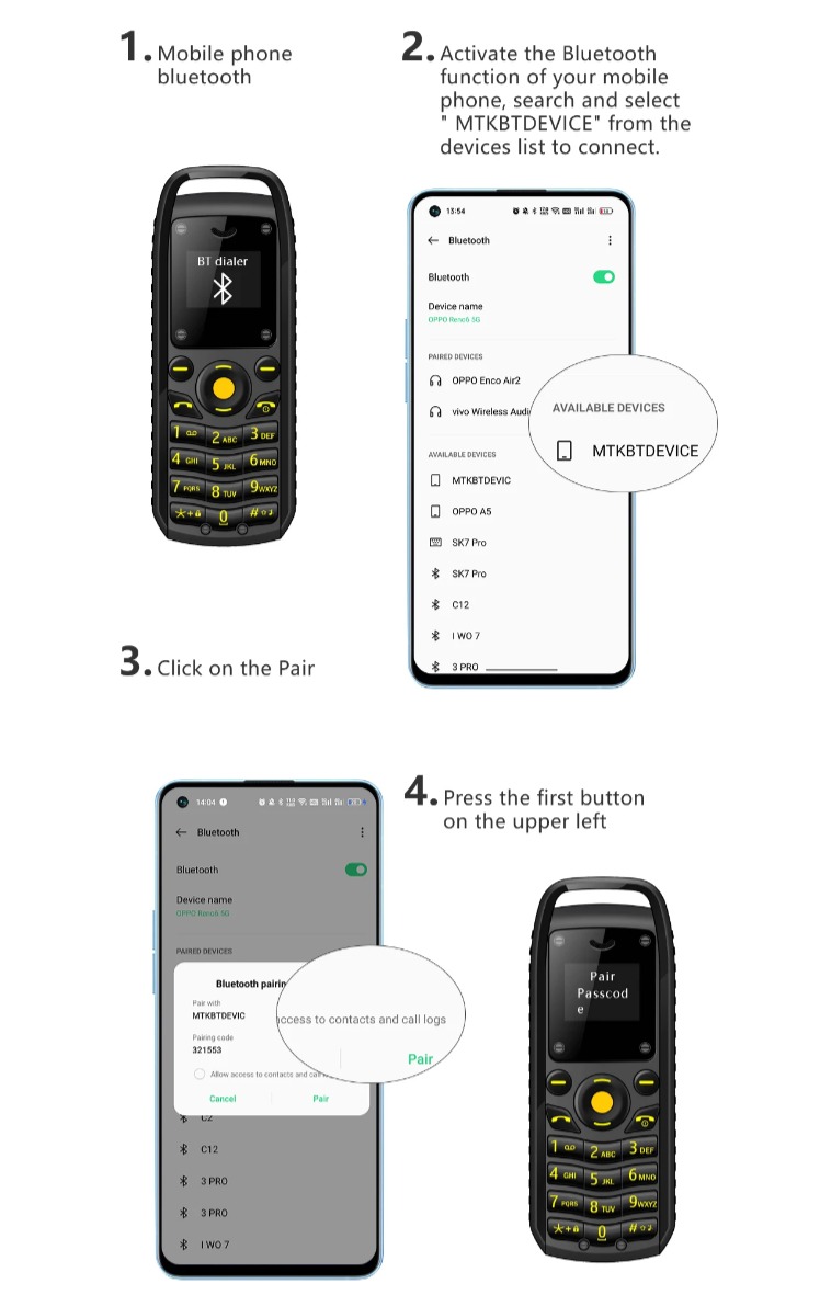 Функцію Bluetooth можна використовувати для передачі музики зі смартфона на міні-телефони