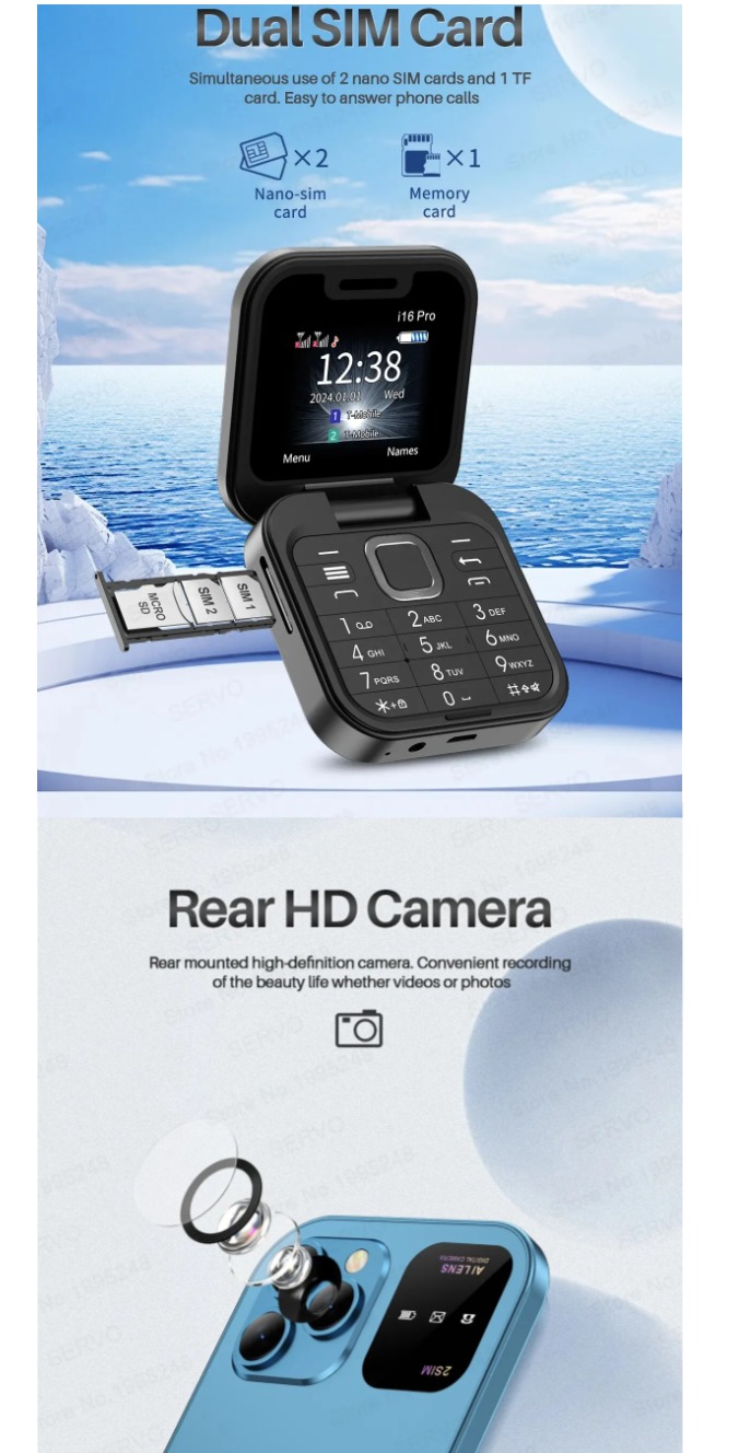 SERVO I16 Pro розкладний мобільний телефон, швидкий виклик, ліхтарик