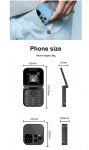 Розмір екрана: 1,77 дюйма HD-екран Розмір телефону: 63 мм X 63 мм X 18,8 мм /118,3 X63 X 12 мм Вага телефону: 80 г (включно з акумулятором) Акумулятор: акумулятор 1000 мАг Телефонна книга: 500 SMS на телефон: 90 Камера: Камера на задньому плані Кількість SIM-карт: 2 Nano SIM карта та 1TF карта пам’яті: 32 Мб RAM, 32 Мб ROM, максимальна підтримка 16 Гб розширення (система займатиме частину пам’яті, рекомендується встановити карту пам’яті перед використанням телефону) Тип інтерфейсу заряджання: Micro USB V2.0