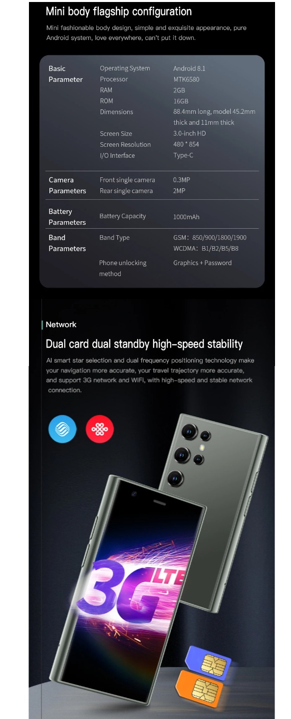 Подвійна SIM-карта, 3,0-дюймовий FW IPS-екран 480 * 854, зарядка Type-C