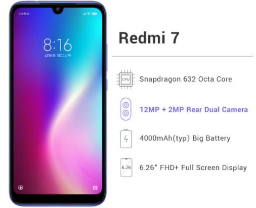 Xiaomi Redmi 7 – один із найцікавіших та збалансованих смартфонів середнього цінового сегменту. Модель виконана в безрамковому корпусі та поставляється в широкому діапазоні екстравагантних кольорів, завдяки чому можна виділитись. Xiaomi Redmi 7 оснащується 8-ядерним процесором Snapdragon 632 з відеочіпом Adreno 506. Смартфон має IPS екран діагоналлю 6,26-дюйма, який підтримує роздільну здатність 1520х720 пікселів. Цього достатньо для комфортної повсякденної експлуатації. Основна камера здвоєна і складається з модулів на 12 та 2 МП. Фронтальна камера 8 МП. Одна з переваг Xiaomi Redmi 7 - ємний акумулятор на 4000 мАч забезпечує до 15,5 годин відтворення відео