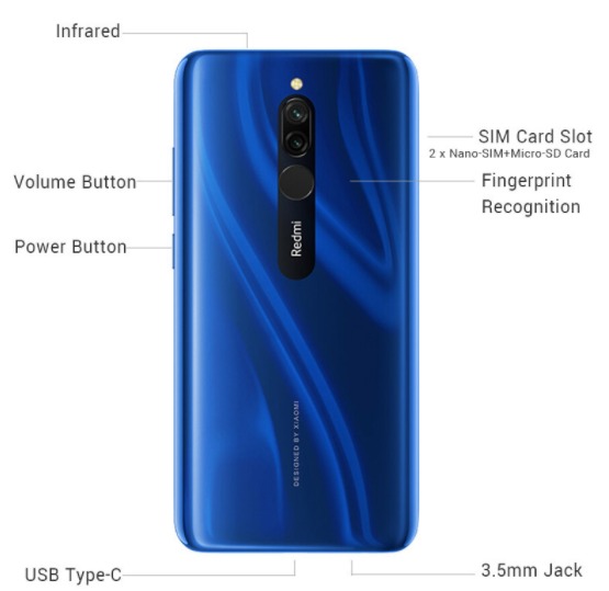 Xiaomi Redmi 8 - смартфон, що елегантно поєднав у собі незвичайні кольори корпусу, безрамкове виконання, непогане оснащення, великий екран і порівняно доступну вартість. 6,22-дюймовий дисплей пристрою виконаний за технологією IPS, а його роздільна здатність становить 1520х720 пікселів. В якості центрального процесора Xiaomi Redmi 8 використовується 8-ядерний Qualcomm Snapdragon 439. Залежно від конфігурації в оперативній пам'яті може бути встановлено 3 або 4 ГБ. Для зберігання даних встановлюється накопичувач на 32 чи 64 ГБ відповідно. Основна камера смартфона складається з модуля на 12 МП та сенсора глибини на 2 МП, Фронтальна ж оснащується 8 МП модулем. Xiaomi Redmi 8 оснащується ємним акумулятором на 5000 мАг, який при цьому підтримує ще й швидку зарядку.