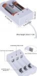 Компактный размер. Предназначен для аккумуляторных батарей типа АА/ААА. Вы можете одновременно заряжать от 1 до 3 батареек АА/ААА. Он обеспечивает 3 независимых слота для зарядки. Универсальный соединительный кабель USB, может быть встроен в адаптер для зарядного устройства ПК или телефона с портом USB.