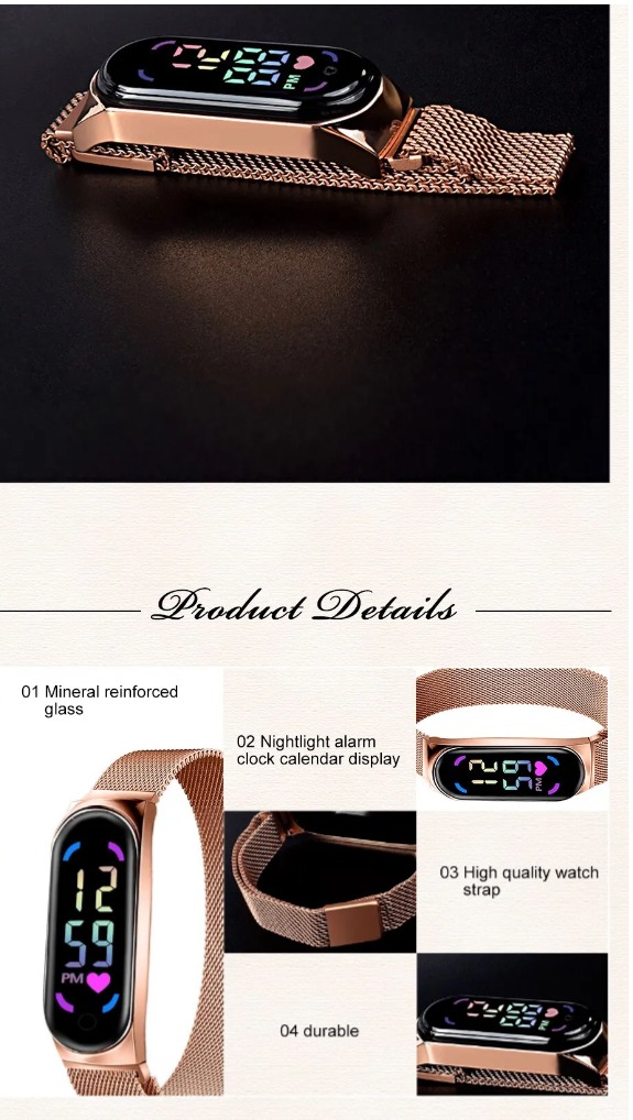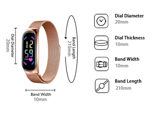 • Магнітний ремінець для годинника: магнітний ремінець для годинника забезпечує надійну посадку та легке регулювання, забезпечуючи комфорт і зручність під час носіння протягом усього дня.