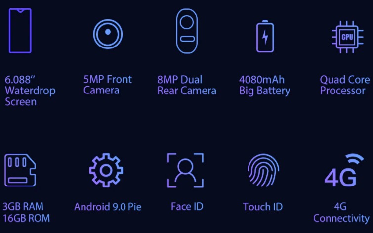 Смартфон Blackview A60 Pro Black выглядит на столько дорого и стильно, что конкуренцию ему могут составить лишь избранные бренды и их смартфоны. По-факту, каплевидный вырез на дисплее уже говорит о премиальности модели, как и тонкие рамки вокруг дисплея. Смартфон сзади так же имеет интересную структуру: большая часть панели шероховатая, а остальная часть скользящая. На ней и располагаются вспышка с двумя камерами, динамик и логотип компании Блеквью. Отметим, что данная модель имеет добротную сборку с высоким качеством, она так же лучше многих конкурентов. Толщина корпуса Blackview A60 Pro совсем небольшая, смотрится девайс очень круто и в руке будет очень аккуратно выглядить. Так же смартфон поставляется в комплектации с силиконовым чехлом-бампером, что важно для удобства. Смартфон работает на Helio A22 - процессоре, который в 2019 году получил большое распространение среди устройств бюджетного сегмента. Он очень хорош, на самом деле. Имеет поддержку 4G, сам по себе неплохую производительность. Так же девайс работает под управлением Android 9, благодаря которому система "летает", а так же есть достаточный объём оперативной памяти в 3 гигабайта. Встроенный накопитель на 16 Гб, которого, впрочем, хватает на долго. Важный момент - автономность. Она здесь очень большая, так как аккумулятор имеет ёмкость 4080 мАч, а это весьма и весьма неплохо. Большой 6.088 - дюймовый дисплей это ещё одна особенность девайса. Его IPS-матрица имеет шикарное качество цветопередачи, а так же феноменальные углы обзора, как для бюджетного девайса. В целом, аппарат шикарен во всех смыслах, предоставит возможность порадовать каждым прикосновением!