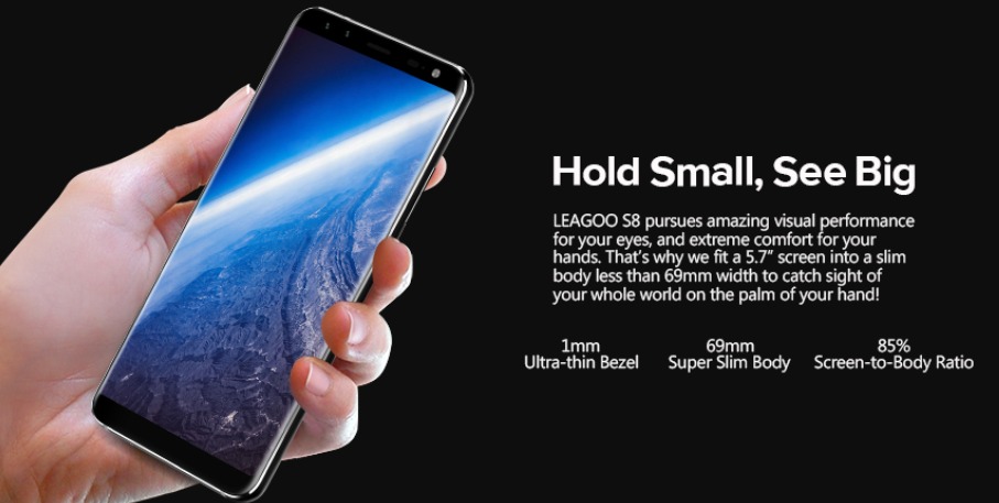 Leagoo S8 позиционируется как эффектный и доступный безрамочный смартфон. Дизайн у модели получился весьма необычным. Тыльная панель с 3D оформлением и чарующей глянцевой отделкой таинственно переливается на свету. Презентабельный внешний вид девайса с плавными переходами заслуживает лучшей оценки. Заказать Leagoo S8 можно в черном или синем цвете. Толщина корпуса составила всего 7,9 мм. Скорость распознавания отпечатков, согласно заявлению производителя, составляет всего 0,1 сек. Слот для сим карт и стандартные механические кнопки перенесены на правый торец.