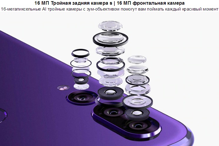 Lenovo Z5s – смартфон для тех, кто ищет сбалансированное устройство для комфортного повседневного использования. Первое что бросается в глаза – яркие цвета корпуса и безрамочное исполнение, благодаря чему 6,3-дюймовый дисплей практически лежит полностью в руке. Разрешение IPS матрицы Lenovo Z5s составляет 2340х1080 точек. Достаточная для большинства задач производительность достигается благодаря 8-ядерной платформе Qualcomm Snapdragon 710. Хорошее качество снимков обеспечивает тройная основная камера, в которой используются сенсоры на 16, 8 и 5 МП. Фронтальная камера оснащается также 16 МП сенсором. Удобства в активном повседневном использовании добавляет Lenovo Z5s поддержка быстрой зарядки