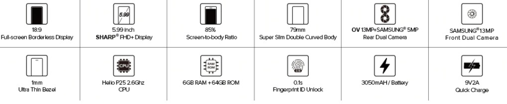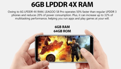 Смартфон Leagoo S8 Pro имеет безрамочный дизайн, дисплей имеет рамку всего в 1 мм. Корпус сделан на основе современного оборудования, с применением ЧПУ, что обеспечивает высокое качество сборки. Это не первое безрамочное устройство от компании Leagoo, в дизайне можно найти стили корейского флагмана. Можно долго описывать дизайн новинки, но вы можете сами его оценить по фотографиям). Далее мы постараемся описать то, что вы получите после покупки S8 Pro. Дисплей 85% фронтально панели занимает 5,99-дюймовый дисплей от компании Sharp, разрешение составляет 2160 на 1080 пикселей. Контрастность матрицы 1500:1, а высокий уровень плотности пикселей делает изображение невероятно четким. Защитную функцию обеспечивает закалённое стекло Corning Gorilla Glass 4. Производительность 8-ядерный процессор имеет частоту 2,6 ГГц, он быстрый, способен обеспечить отличный уровень производительности во всех приложениях, но он также имеет функции энергосбережения и может рационально использовать заряд аккумулятора. Оперативной памяти в телефоне 6 гигов, а встроенный флеш-накопитель на 64 гигабайта. Камеры Основная камера состоит из двух модулей на 13+5 МП. Такое сочетание позволяет получать больше света, что делает фотографии более качественными. Кроме того, двойная камера может создавать очень красивый эффект боке. Апертура камеры – F 2.0. Как ни странно, но фронтальная камера оборудована матрицей на 13 мегапикселей.