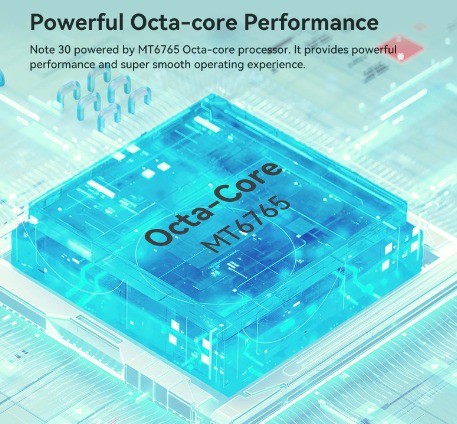 Note 30 оснащений восьмиядерним процесором MT6765. Він забезпечує високу продуктивність та надгладку роботу.