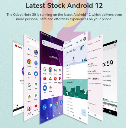 Cubot Note 30 працює на новітній версії Android 12, яка забезпечує ще більш персоналізовані, безпечні та легкі можливості використання вашого телефону.