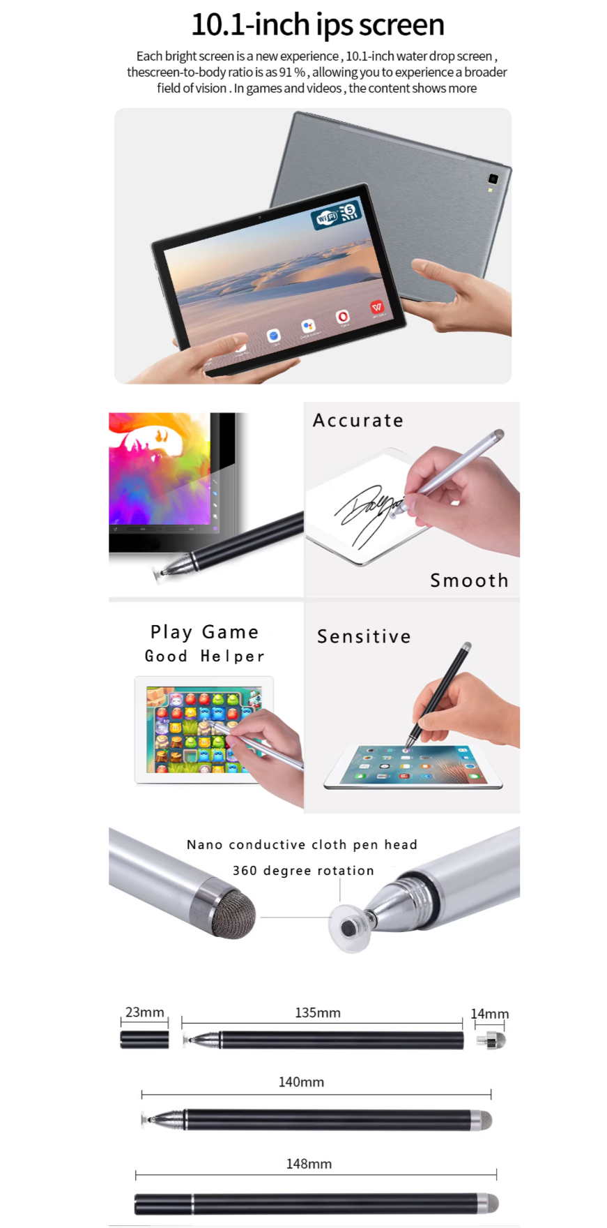 В комплекте защитная пленка + стилус