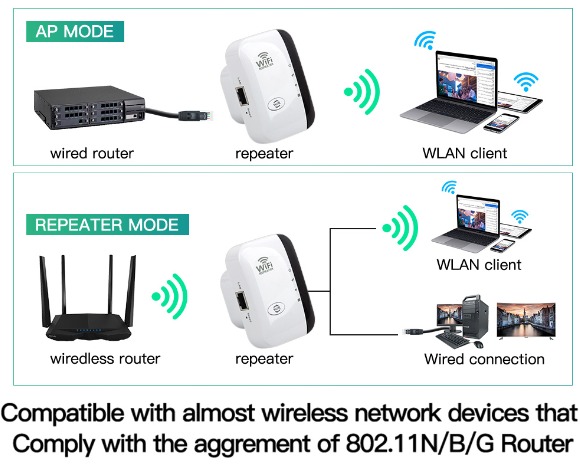 A1: Відповідно до протоколу бездротової передачі, усі ретранслятори налаштовано на роботу в напівдуплексному режимі замість повнодуплексного. Іншими словами, маршрутизатор (або точка доступу) і термінальні клієнти; таким чином час передачі буде вдвічі збільшений, а швидкість – зменшена. Рекомендується підключатися до розширювача, якщо з’єднання з домашньою мережею погане або якщо вам потрібно отримати більше бездротового покриття, щоб усунути «мертві зони». Питання 5: чому