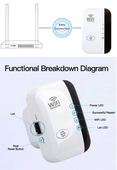 1. Пристрій підсилення сигналу: цей розширювач діапазону WiFi може допомогти посилити ваш Wi-Fi, розширити сигнал на більшу відстань і усунути мертві зони Wi-Fi, щоб ви могли використовувати мережу в будь-якій частині вашого дому. Вам не доведеться турбуватися про слабкі сигнали через відстань, стіни та підлогу.