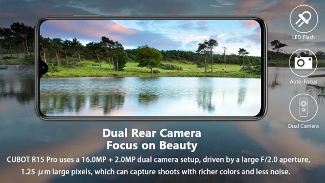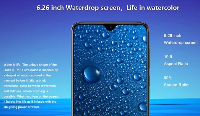Cubot R15 Pro, 6,26' IPS HD экран, 4 ядерный процессор, RAM 3Gb, ROM 32Gb, Android 9.0