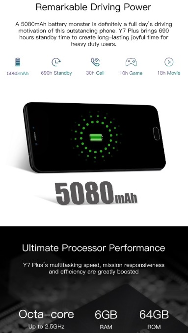 Внешний вид DOOGEE Y7 Plus является довольно интересным. Телефон получил стильный корпус из закаленного стекла, покрытый металлом. Также разработчики предоставили модели несколько ярких цветовых решений, которые тоже понравятся пользователям. В смартфоне Doogee Y7 Plus производители установили безрамочный 6,18-дюймовый дисплей с отличной цветопередачей и неплохой чувствительностью. А благодаря встроенному графическому процессору и IPS матрице владельцы телефона смогут видеть хорошую картинку под любым углом обзора. Быстродействие Doogee Y7 Plus зависит от мощного процессор от MediaTek и 6 Гб оперативной памяти. Такого тандема будет достаточно даже для запуска тяжелых игр. Также в нем есть 64 Гб встроенной памяти.