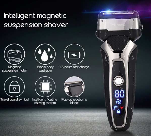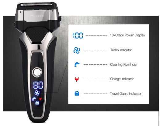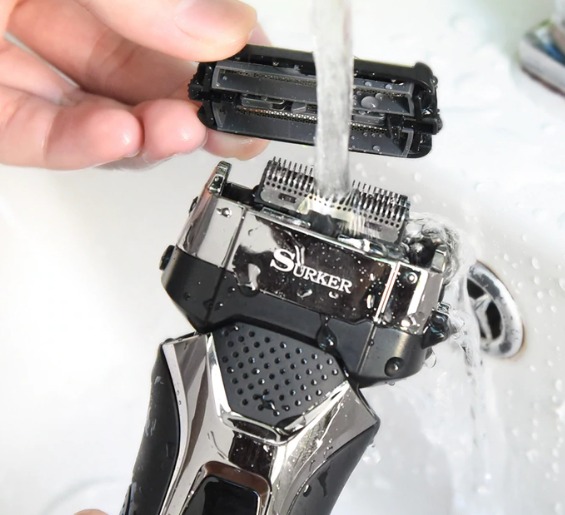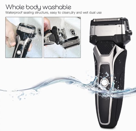 Сухое/влажное двойное использование. Так как корпус машины водонепроницаемый и он может быть полностью погружен в воду, вы можете удобно сушить бритву в любое время или в душе, удобно чистить.