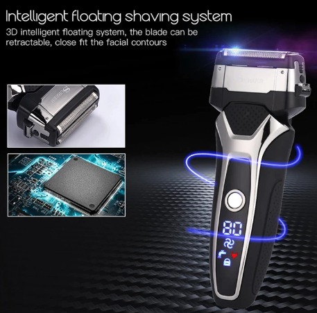 С 3 лезвиями (2 фольги для бритья и интегрированный триммер для длинных волос) и 3D плавающей системой бритья, умное и быстрое бритье.