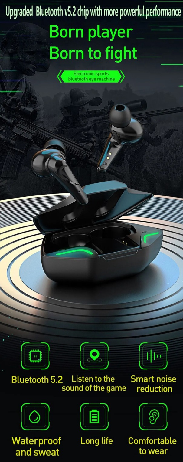 • Справжній бездротовий зв’язок: насолоджуйтеся справжньою свободою бездротового зв’язку з оновленою версією V5.2 Chip TWS G11 Бездротовий спорт на відкритому повітрі Бездротова гарнітура Ігри Навушники Кіберспорт Прослуховування музики Універсальний. Більше ніяких заплутаних проводів або обмеженої мобільності.
