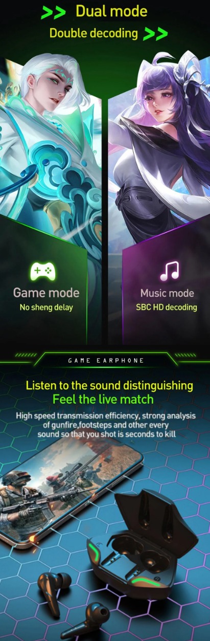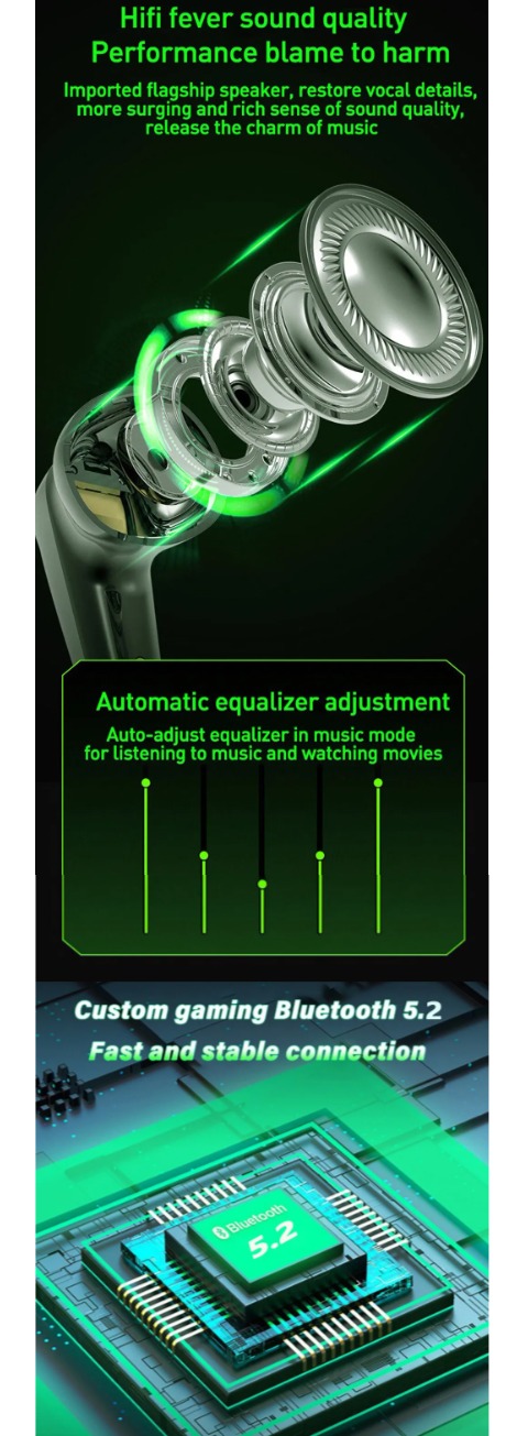 Особливості: 1. Повночастотний HIFI Moving Iron 2. Ліве та праве вухо можна використовувати окремо та незалежно підключати до пристроїв Bluetooth 3. Розумний дизайн кнопок, простий у використанні 4. Bluetooth 5.2, низьке енергоспоживання.