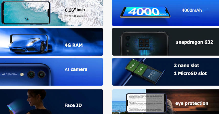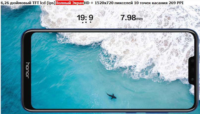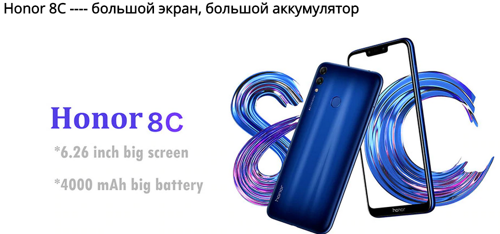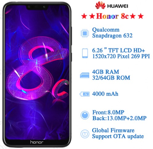 Honor 8C (BKK-LX2/BKK-AL10), 6,26' HD+ IPS экран, DUAL SIM, 8 ядерный процессор, оперативная память 4 GB, ROM 32 Gb, Android 8.1