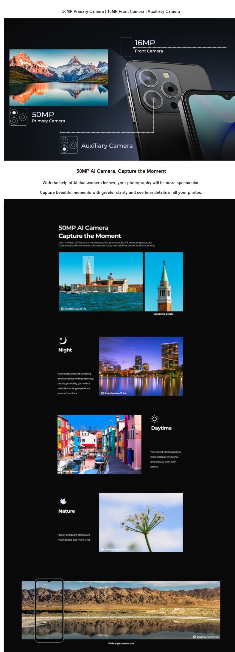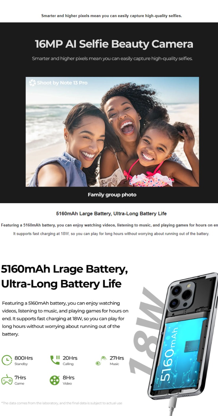 Hotwav Note 13 Pro Black поєднує в собі відмінний дизайн та з цікавими характеристиками, пропонуючи все це за дуже привабливою ціною. Пристрій має зручну ергономічну форму, а в комплекті з ним прозорий силіконовий бампер, який забезпечує додатковий захист корпусу. Цей смартфон візуально має схожість зі смартфонами Apple і зроблений з високою якістю, як і багато інших брендів, які також прагнуть цього стилю. Неймовірна пам'ять за власну ціну! У 2023 році більшість виробників смартфонів вирішили суттєво збільшити обсяги пам'яті у своїх пристроях. Якщо раніше 8+8 Гб ОЗУ були ознакою флагманського пристрою, то зараз такий обсяг можна зустріти не тільки у флагманських моделях від Samsung за 1000 доларів, а й у більш доступних моделях, наприклад, Hotwav Note 13 Pro, вартість якого становить всього 1/ 10 ціни. Також, постійний об'єм пам'яті в 256 Гб став більш доступним, подібно до оперативної пам'яті. Крім того, у багатьох смартфонах передбачена можливість встановлення картки пам'яті ємністю до 1 Тб, що дозволяє розширити об'єм сховища ще більше.