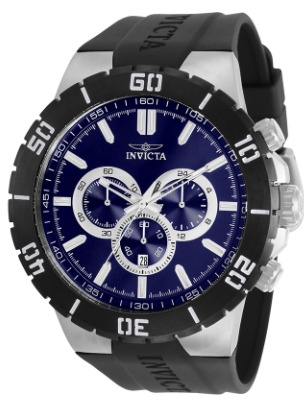 • Invicta 30727 має 54-міліметровий корпус з нержавіючої сталі з синім циферблатом.