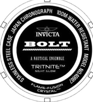 Завдяки чіткому ставленню та здібностям Invicta Bolt є натхненником домінування. Ідеально синхронізовані рухи, складна конструкція корпусу та фірмовий дизайн мотузкових прикрас, закріплених навколо безеля, справляють незабутнє враження. Різноманітність матеріалів і оздоблення забезпечує широкий вибір варіантів на будь-який смак. Invicta Bolt, безкомпромісне твердження про довершений хронометраж, де потужність стає гармонізованим рухом.