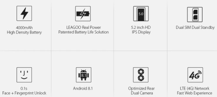 Leagoo Power 2 Pro, 5,2' HD IPS экран, DUAL SIM, 4 ядерный процессор 1,3 GHz, оперативная память 2 GB, ROM 16 Gb, Android 8.1, Двойная задняя камера
