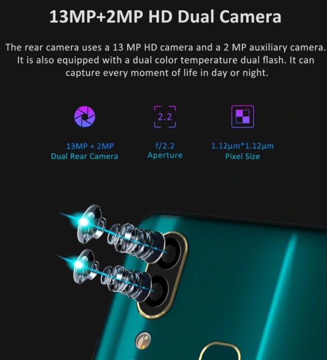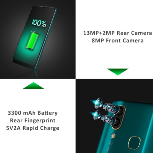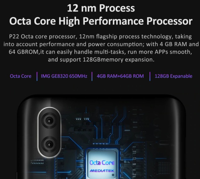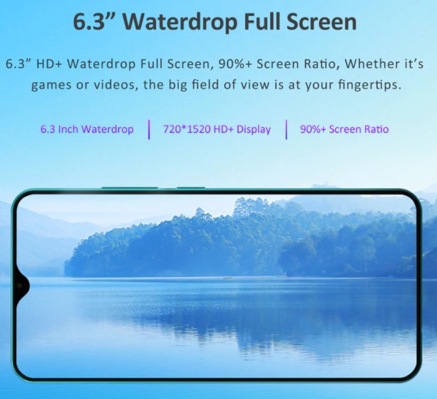 Внешний вид телефона отвечает большинству стандартов нынешней моды. Сочетание двойной камеры, сканера отпечатков пальцев и большого дисплея с соотношением сторон 19:9 и каплевидным вырезом оставляет положительные эмоции. Сама 6,3-дюймовая OGS-панель яркая и контрастная, имеет разрешение в 1520x720 пикселей. Такое решение хорошо влияет на автономность и производительность гаджета. Энергоэффективный процессор Mediatek Helio P22 производитель объединил с 4гб ОЗУ и графическим чипом PowerVR GE8320 для получения комфортного геймплея в ресурсоемких играх. Объем внутреннего хранилища не огорчает 64гб ПЗУ и расширяется карточками MicroSD.