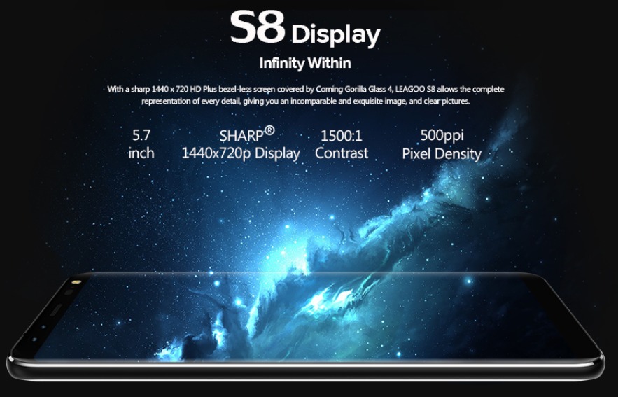 На лицевой панели располагается 5,72-дюймовый дисплей с HD разрешением. Экран от Sharp вызывает восторг от созерцания изображения. Контрастный дисплей с максимальными углами обзора защищен прочным стеклом Gorilla Glass 4. Украшает лицевую панель изогнутое стекло.