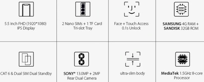 Leagoo T8S, 5,5' FHD экран, DUAL SIM, 8 ядерный процессор 1,5 GHz, оперативная память 4 GB, ROM 32 Gb, Android 8.1, Двойная задняя камера
