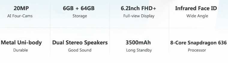 Lenovo S5 Pro, 6,2' FHD IPS экран, DUAL SIM, 8х ядерный процессор, оперативная память 6GB, ROM 64Gb, Android 8.1