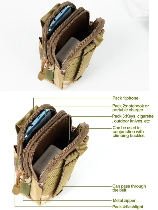 4. Ця сумка є чудовим органайзером для смартфона з великим екраном, камери, ключа, гаманця, ручки, ножа, блокнота, маленького інструменту тощо, дрібних аксесуарів, і навіть може бути кобурою. Це ідеальна сумка, тактична поясна сумка або сумка для гаджетів.