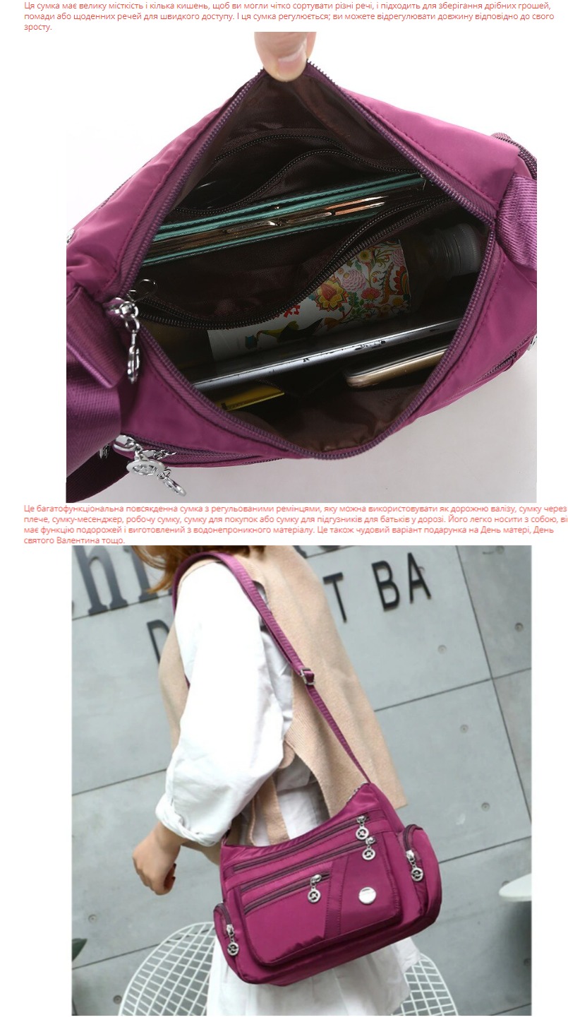 Ця сумка має велику місткість і кілька кишень, щоб ви могли чітко сортувати різні речі, і підходить для зберігання дрібних грошей, помади або щоденних речей для швидкого доступу. І ця сумка регулюється; ви можете відрегулювати довжину відповідно до свого зросту.