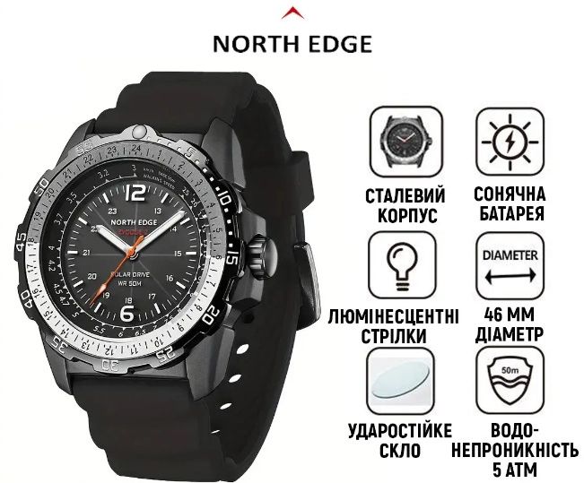 North Edge Evoque 2 чоловічий водонепроникний годинник на сонячній батареї