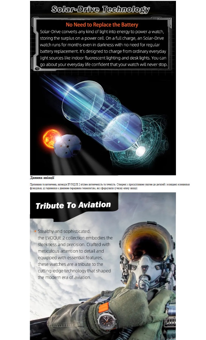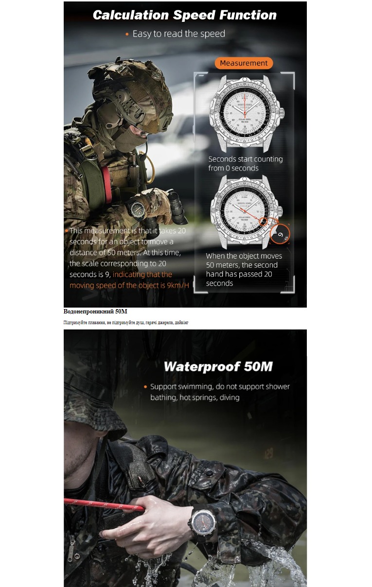 • Опції: Водостійкість 5 атм, хардлес скло, сонячна батарея, тахіметр