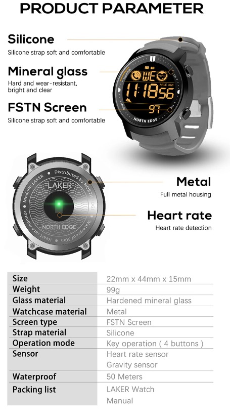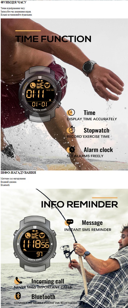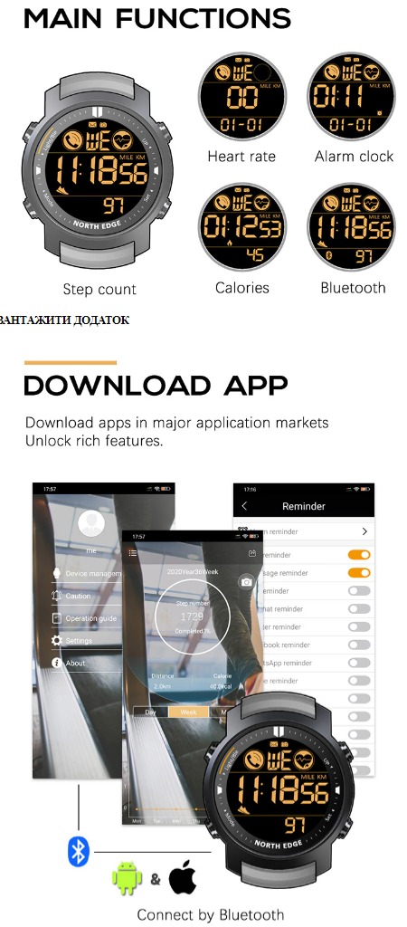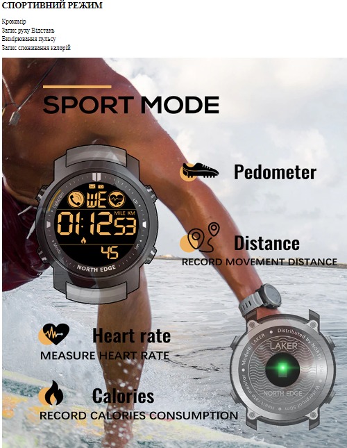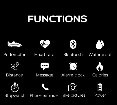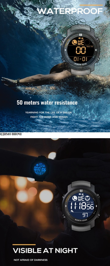 Монітор серцевого ритму, Плавання, Біг, Крокомір, Будильник, Водонепроникний 50м, Android IOS