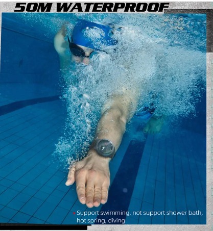 Цей годинник водонепроникний 50M, можна пірнати, плавати, потрапляти під дощ, але не в гарячу воду, заборонено носити годинник у ванні, душі, потіти, сауні