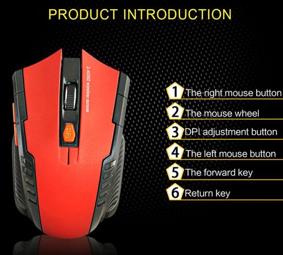 ORZERHOME 2,4 ГГц Беспроводная оптическая мышь с USB-приемником, 1600 dpi, 6 кнопок