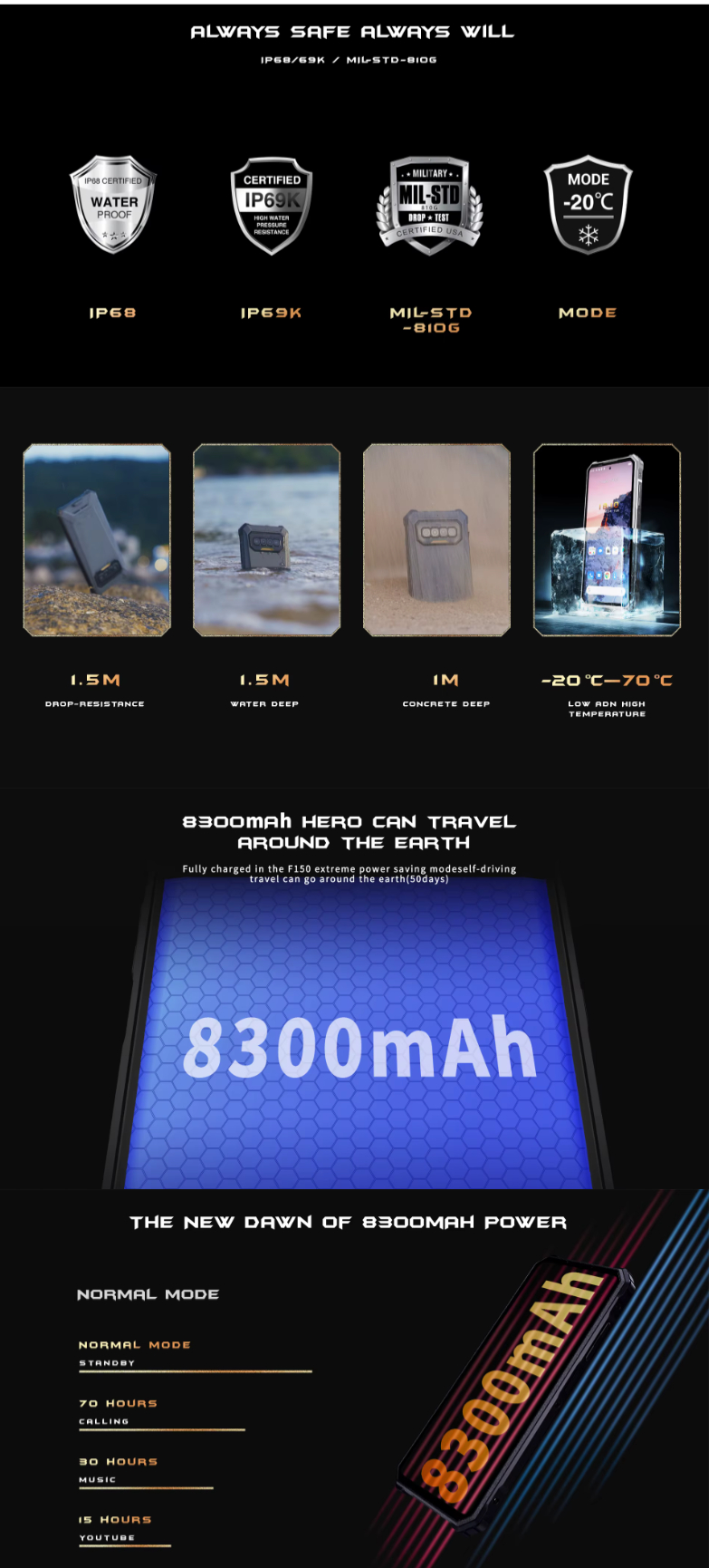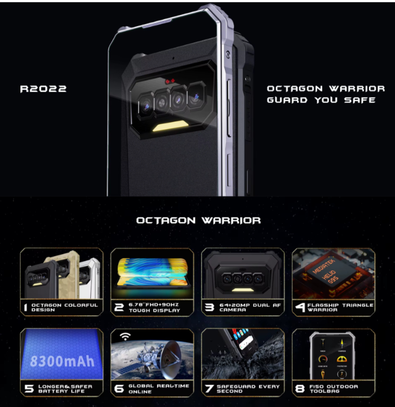 Oukitel F150 R2022, 6,78' IPS FHD екран, RAM 8Gb, ROM 128Gb, Android 11, IP68, IP69К