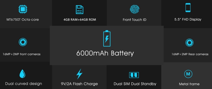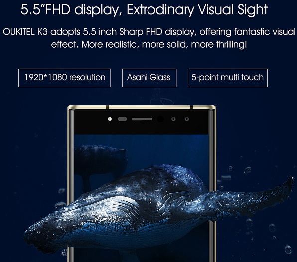 Oukitel K3, 5,5' IPS FHD экран, 8 ядерный процессор 1,5 GHz, оперативная память 4GB, ROM 64Gb, Android 7.0, 2 SIM-карты, двойные камеры