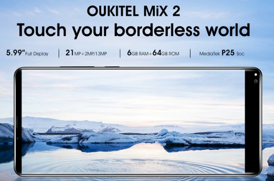Смартфон Oukitel MIX 2 имеет слоты для  2 SIM  экран: 5,9"  IPS  1920x1080  встроенная память: 64 ГБ  оперативная память: 6 ГБ  процессор: MediaTek Helio P25  ОС: Android 7.0  аккумулятор: 4080 мАч (несъемный)  камера: 21 Мп