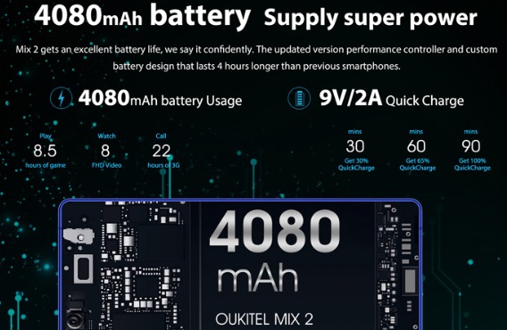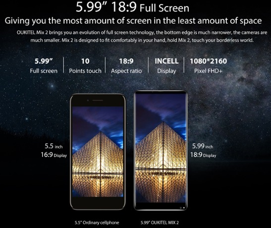 Oukitel MIX 2, 5,9' IPS FHD экран, 8 ядерный процессор, оперативная память 6GB, ROM 64Gb, Android, 2 SIM-карты