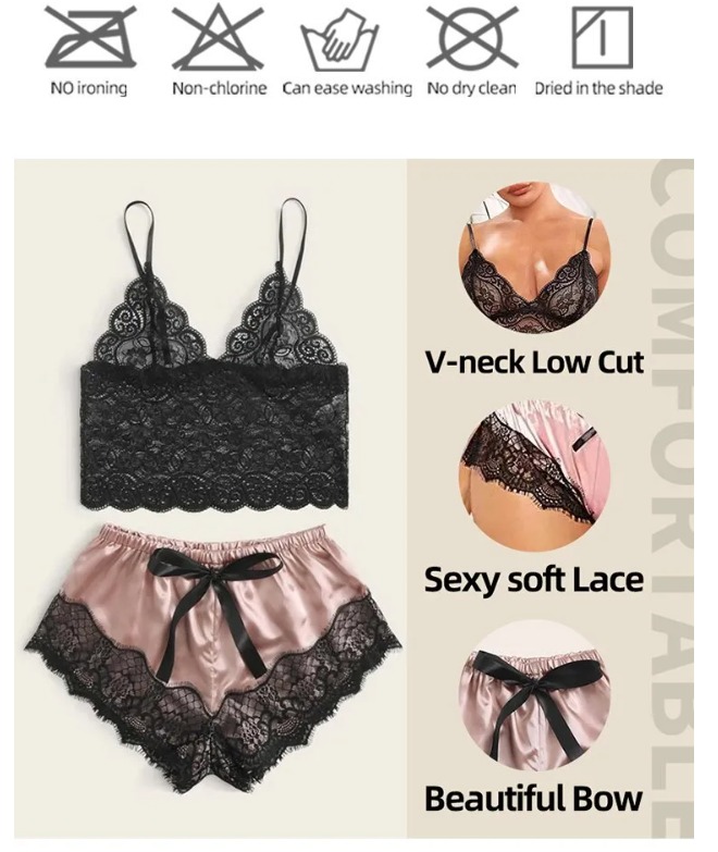 Пожалуйста, сформулируйте Ваши вопросы относительно Сексуальна жіноча мереживна піжама топ із низьким вирізом і шовковисті шорти Ice:
